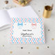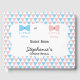 Le genre motif du triangle bleu et rose révèle avec la cravate arc livre d'or. Le design est composé d'un motif triangles bleu et rose et d'un cercle blanc au milieu avec une cravate arc et votre texte personnalisé.