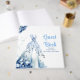 Beautiful bridal shower guest book with blue floral wedding dress with flowers. Perfect for a bridal shower. The words can be changed to suit your own details or requirements