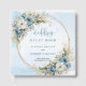 This guest book provides a beautiful space for guests to leave their names, messages, and heartfelt wishes. The soft blue floral palette paired with airy greenery creates a calm, romantic look that complements a wide range of décor styles, from classic and formal to bohemian and contemporary. The gold glitter frame adds a subtle touch of luxury without overpowering the design.