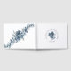 Invitation vos invités mariages à partager leurs souhaits avec ce livre d'or rose et feuille bleu. Le devant est orné d'un bouquet de fleurs bleu indigo avec le nom et la date de la mariée et des mariés. Le dos ont un centre fleuri à l'accentuation avec des roses et des feuilles bleu indigo. Conçu pour se coordonner avec la collection bleue indigo.