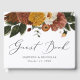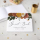 Livre d'hôtes rustique mariage avec des fleurs d'aquarelle et de la verdure dans des couleurs automnales muettes d'ivoire, d'orange, d'or moutarde, vert olive, rose poussiéreux, et marron. "Livre d'Invité" est affiché dans un script de calligraphie moderne avec vos noms et date mariage ci-dessous. La colonne vertébrale affiche vos noms et votre mariage en caractères blancs gras. L'arrière du livre d'hôtes mariage de l'automne est orné d'un arrière - plan d'aquarelle vert olive. Conçu pour coordonner avec notre collection Boho Autumn Floral mariage.
