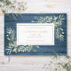 Une célébration de la vie personnalisée et rustique, livre d'hôtes funéraire avec verdure sur un arrière - plan de panneaux de bois bleu. Conçu par Thisisnotme©