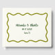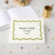 Cette conception est composée d'une bordure ondulée simple, fantaisiste et dessinée à la main. La police utilisée pour le texte principal est décontractée et ludique, avec une qualité manuscrite, lui donnant une touche personnelle et intime. Utilisez cette conception si vous voulez donner la priorité à une image conviviale et accessible à votre mariage plutôt qu'à la formalité.