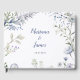 Un assortiment de fleurs sauvages aquarelles bleues et de verdure constitue l'arrière-plan de ce livre d'or pour une fête de mariage. Parfait pour un mariage sur le thème des fleurs sauvages ou bohème, une fête de mariage, un shower de couple ou de mariage, une fête de fiançailles, une célébration d'anniversaire, une baby shower ou une fête d'anniversaire. Disponible avec des produits assortis.