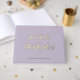 Prenez les souvenirs de votre journée spéciale avec ce magnifique livre d'hôtes Foil, personnalisé avec les noms de la mariée et du marié. Conçu dans une police de calligraphie moderne et élégante, ce livre d'hôtes est le parfait mélange de simplicité et d'élégance. Avec 16 couleurs au choix, il peut être adapté à n'importe quel thème mariage, du rustique au classique, et convient à toutes les saisons. Le design intemporel garantit que ce livre d'hôtes sera un souvenir précieux pour les années à venir, offrant une touche de sophistication branchée qui complète à la fois les mariages traditionnels et contemporains. Rédigé avec soin dans le détail, chaque livre présente vos noms élégamment affichés dans un script élégant, ce qui en fait le vôtre. Que vous soyez l’hôte d’une grande fête ou d’un rassemblement intime, ce livre d’or personnalisé ajoute une touche de finition élégante, permettant à vos invités de laisser des messages sincères que vous aimerez pour toujours.