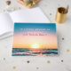 Livre d'or du service commémoratif, parfait pour des funérailles nautiques, avec une photo d'un coucher de soleil sur l'océan.