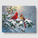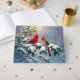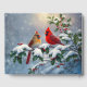 Une paire de cardinaux rouges du nord perchent sur une branche sainte recouverte de baies rouges et de neige.