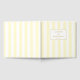 Ce livre d'or de mariage présente un design minimaliste et moderne avec des bandes verticales crème et jaune pâle, créant un contraste élégant. La mise en page est centrée autour d'un petit cadre bordé d'or qui met en valeur les noms "Lauren et Benjamin" dans une typographie serif classique, parfaite pour la personnalisation. Des accents de confettis dorés éparpillés ajoutent une touche festive à l'esthétique sophistiquée, ce qui en fait un choix idéal pour célébrer une occasion spéciale comme un mariage.