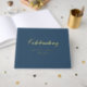 Customer specific, memorial, elegant, simple "Celebration of life" elegant handwriting font, blue funeral foil guest book. Availible in gold, rose-gold and silver foil.