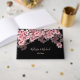 Pretty pink watercolor cherry blossoms on a black background. Custom bride and groom names in an elegant handwritten script.