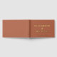 Ce livre d'hôtes chic et mariage en terre cuite est la meilleure façon de chérir les souvenirs de votre journée spéciale. Il présente vos noms dans la typographie serif classique et élégante, monogrammé en feuille d'or véritable, votre date mariage et votre titre personnalisé sur la colonne vertébrale.