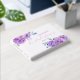 Livre d'invités élégante et simple de Fête des mariées avec fleur rose violet et texte de calligraphie dynamique.