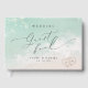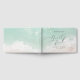 Beau turquoise abstraite aquarelle scintillante vague d'océan et les coeurs dans l'arrière - plan de plage de sable, surmonté d'un script élégant et d'élégante police serif, moderne et simple. Grand livre d'hôtes personnalisé pour mariage nautique plage, mariage de destination tropicale, mariage sur le thème de l'océan côtier en été.