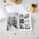 Créez un souvenir intemporel du baptême ou du baptême de votre petit avec ce livre d'or de collage photo chic. Le design comporte six photos en noir et blanc sur l'avant et trois autres sur la couverture arrière, en formats carré, vertical et horizontal. Personnalisez avec le nom de votre bébé et la date de baptême en lettres blanches élégantes sur un carré bleu marine gris.