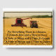 Une moissonneuse rouge et un tracteur récoltent le blé. Le dos contient des citations de Ecclesiastes 3:4. Pour tout, il y a une saison. Un moment pour semer et un moment pour récolter. Un moment pour pleurer et un moment pour rire. Un moment de deuil et de danse.