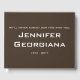 Cet élégant livre d’or de condoléances funéraires présente le message "Nous n’oublierons jamais notre temps avec vous", ainsi que le nom personnalisé et les dates de naissance et de décès de la personne décédée. Il pourrait être utilisé pour enregistrer des souvenirs chéris de quelqu'un qui est récemment décédé. Le texte est blanc de couleur, et l'arrière - plan est gris foncé brun.