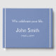 Ce livre d'or sobre sur les funérailles et commémorations comporte le message "Nous célébrons votre vie", ainsi que le nom et les dates de naissance et de décès de l'individu qui est décédé. Il pourrait servir à enregistrer les condoléances pour les proches et les amis de quelqu'un qui est récemment décédé.