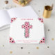 Belle croix de fleur rose pour votre première sainte communion. Décoré avec de belles et belles aquarelles rose vif fleurs et feuillage vert. Modèle personnalisé pour un livre d'or unique et très spécial.