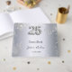 Un fond métallisé argenté faux, décoré de poussière de paillettes fausse et de feuillage. Personnalisez et ajoutez un titre, vos noms et une date. Le numéro 25 est écrit en argenté faux avec une police style ballon.