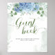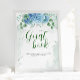 Livre d'or de Baby Shower à fleurs bleues d'hortensia. Articles assortis disponibles.