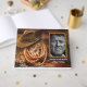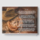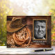 Livre d'or de funérailles et de mémorial avec chapeau de cowboy, corde et balle de foin sur un fond en bois rustique avec un cadre photo en corde rustique. Ce livre d'or de funérailles sur le thème western cowboy est facilement personnalisable en ajoutant simplement la photo et le texte de votre choix sur le devant, le dos et la tranche.