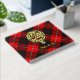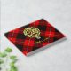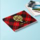 Clan Cunningham crête badge entouré d'une sangle et boucle sur l'arrière - plan tartan. Texte avant, arrière et colonne vertébrale personnalisé.