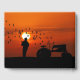 Un fermier et un tracteur sont en silhouette devant un coucher de soleil éclatant.