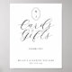 Panneau de Cartes & Cadeaux à l'écriture élégante. Design minimaliste avec écriture élégante et blason personnalisé avec monogramme du couple. Personnalisez avec un monogramme, le nom du couple et la date du mariage.