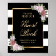 Ce panneau floral noir et rose élégant invite les invités de mariage à signer votre livre d'or. Des articles assortis sont disponibles pour compléter ce panneau de livre d'or de mariage avec des fleurs roses et de la verdure sur fond noir et blanc.