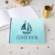 Invitez vos invités de mariage à partager leurs vœux avec ce modèle de livre d'or à thème nautique, illustré d'un dessin vintage de bateau à voile par vent marin bleu marine. Votre nom de famille apparaît en dessous en lettrage élégant bleu foncé, ainsi que vos prénoms et la date de votre mariage.