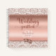 Ce livre d'or de mariage à reliure spirale glamour présente un monogramme élégant en écriture cursive des mariés, une typographie moderne pour le titre, et le fond dégradé rose gold est bordé en haut et en bas de damas pailleté rose gold.