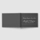 Ce livre d'or minimaliste pour mariage ou réception de mariage comporte le message "Livre d'or de réception de mariage", les noms personnalisés du couple marié et la date de réception de mariage. Le fond est de couleur grise. Il pourrait être utilisé pour enregistrer qui a assisté à la cérémonie.