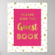 Veuillez signer notre affiche de livre d'or pour baby shower, bridal shower ou mariage en rose fuchsia vif et blanc avec motif de confettis dorés et texte à la main. Parfait pour une baby shower, un mariage, un anniversaire ou un enterrement de vie de jeune fille.