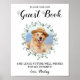 Incluez votre meilleur chien, votre meilleur chat et tout animal de compagnie dans votre mariage avec ce panneau de livre d'or personnalisé pour les invités avec photo d'animaux. Parfait pour les amoureux des chiens, et un livre d'or pour chiens sera un succès lors de votre mariage. Simple moderne blanc avec feuilles d'eucalyptus.