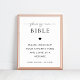 Encouragez vos invités à laisser des prières pour les nouveaux M. et Mme avec ce poster moderne et élégant de livre d'or de bible, avec une écriture moderne, un cœur noir et votre texte personnalisé. Ajoutez facilement vos propres détails en cliquant sur l'option "personnaliser".