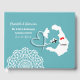 Un livre d'hôtes mariage amusant mais élégant pour les couples qui se marient sur l'île grecque de Santorin, avec une carte en silhouette blanche sur turquoise avec des coeurs d'amour rouge sucré et si facile à customiser avec vos noms personnels et date de mariage
