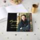 Le livre d'or de l'étudiant est présenté avec un vrai texte en feuille d'or, un exemple de photo d'un diplômé avec le nom et la date. La couleur du livre est noir Personnaliser des pages liées modifier cet élément et modifier l'exemple de photo sur le vôtre et modifier le texte sur le vôtre. Image stock freepik.com