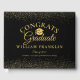 Un élégant livre d'or de remise de diplôme présentant les détails de votre diplômé dans une typographie chic sur fond noir et or pailleté. Conçu par Thisisnotme©