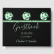 Enregistrez les invités à votre grande journée avec un livre d'or Rose Emerald Wedding Day. Le design du livre d'or est orné de roses émeraude ornés d'une bannière fleurie de fantaisie. Personnalisez avec les noms du marié et de la mariée avec la date du mariage. Papier à lettres mariage supplémentaire disponible avec cette conception aussi.