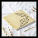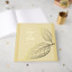 Livre d'or mariage au design feuille moderne. Véritable feuille sur le devant et le côté du livre. Bonne journée de papeterie pour votre mariage. Montré dans une couleur or doux. Customisez l'avant et le côté du texte souhaité. Utilisez le modèle pour créer votre propre livre d'or mariage feuille d'or.