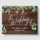 Ce design rustique et chaleureux est doté d'une police d'écriture moderne qui a été utilisée pour créer un graphique "Le Mariage de". L'arrière - plan était recouvert d'une image en bois marron et agrémenté d'images représentant la végétation d'eucalyptus. Parfait pour votre grange, décontracté ou mariage campagnard. Utilisez les champs modèle pour ajouter vos informations personnelles. // 151 //
