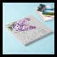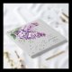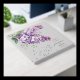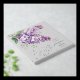 - Soft watercolor lilac floral artwork with subtle gold details