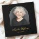 Livre d'or funéraire commémoratif avec votre photo à l'intérieur d'une arche et le nom dans une élégante police de calligraphie avec les dates ci-dessous sur un arrière - plan noir ou personnalisé couleur.