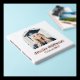 Un livre d'or avec votre photo à l'intérieur d'une arche et le nom du diplômé dans une police audacieuse et rétro. Véritable feuille texte sur blanc ou couleur arrière - plan personnalisé.