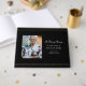 Ce monument commémoratif ou livre d'or funéraire à cadre classique présente la photo de votre être cher comme point focal sur un fond noir avec un double accent de cadre doré. Les mots modifiables "In Loving Memory" apparaissent au-dessus de votre être cher. Vous pouvez également placer le nom et les dates de votre être cher sur le design pour faire un livre d'or personnalisé.