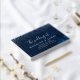 Capturez des messages et des souvenirs chaleureux avec cet élégant livre d'invités de mariage avec un schéma photo romantique et un arrière - plan bleu marine chatoyant. L'avant présente une belle conception étoilée avec une calligraphie élégante annonçant "Le mariage de" ainsi que des noms personnalisables, des dates et des détails du lieu. Parfait pour un mariage moderne et intemporel, ce livre d'hôtes ajoute une touche personnelle et polie à votre journée spéciale. Personnalisez-le facilement avec votre propre photo et texte.