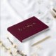Faites de votre journée spéciale un moment inoubliable avec notre Elégant livre d'hôtes Mariage de calligraphie bourguignonne. Ce livre d'hôtes étonnant présente un riche arrière - plan bordeaux avec les mots "le mariage de" magnifiquement rendu en calligraphie élégante sur la couverture avant. Ci-dessous, vos noms et votre date de mariage sont personnalisés dans une combinaison classique de polices serif de style ancien et de polices sans-serif modernes, créant un look intemporel qui saisit parfaitement l'essence de votre jour de mariage. La couverture arrière poursuit le thème élégant avec une touche personnalisée, affichant l'emplacement et l'année de votre mariage dans une police sans-serif propre sur le même arrière - plan bordeaux luxueux. De plus, la colonne vertébrale du livre d'or est personnalisée avec le texte que vous avez choisi dans une police serif, ce qui en fait un souvenir précieux qui vous rappellera votre jour spécial pour les années à venir. Conçu avec des matériaux de première qualité et des touches de papier peint luxueux, ce livre d'hôtes est conçu pour impressionner. Il offre suffisamment d'espace pour que vos invités puissent laisser des messages sincères et des voeux de bonheur, afin que vous puissiez revivre la joie et l'amour de votre jour de mariage chaque fois que vous l'ouvrez. Que vous planifiez une grande fête ou un rassemblement intime, notre Elegant Burgundy Calligraphy Foil Mariage Guest Book est l'ajout parfait à votre journée de mariage. Commandez dès aujourd'hui et ajoutez une touche d'élégance et de personnalisation à votre événement spécial.