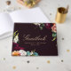 Pour votre réception de mariage, cet élégant livre d'or floral mariage est doté d'un script en faux or avec vos noms et date mariage pour personnaliser sur un arrière - plan bordeaux foncé bordé de fleurs de rouge, pêche et blanc. Conçu par Susan Coffey.