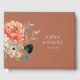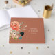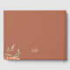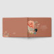Joli livre d'hôtes mariage, avec des noms de couple en ivoire chic, contre un joli arrière - plan en terre cuite ocre et un magnifique étalage de fleurs d'aquarelle fleurie. Le dos comprend deux initiales côte à côte. Le design dégage un sentiment de joie et d'élégance jeune.