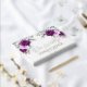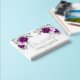 Cet élégant livre d'hôtes présente un design rustique avec des arrangements floraux violets et rousses entourant les mots "Notre Mariage" en feuille d'or et les noms du couple. La disposition géométrique apporte une touche de modernité, ce qui en fait un endroit parfait pour un mariage élégant.